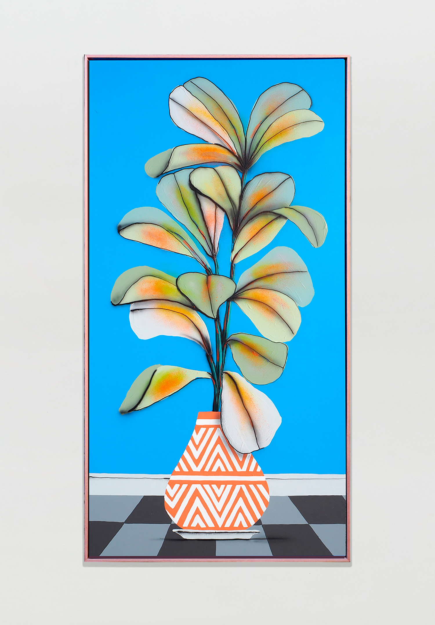 Paul Wackers, Mind the flower pots, 2021. Acrylic on canvas, 48 x 40 inches, 122 x 102 cm.