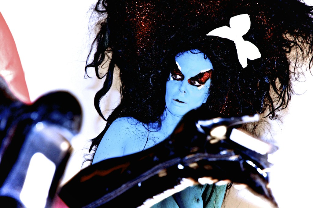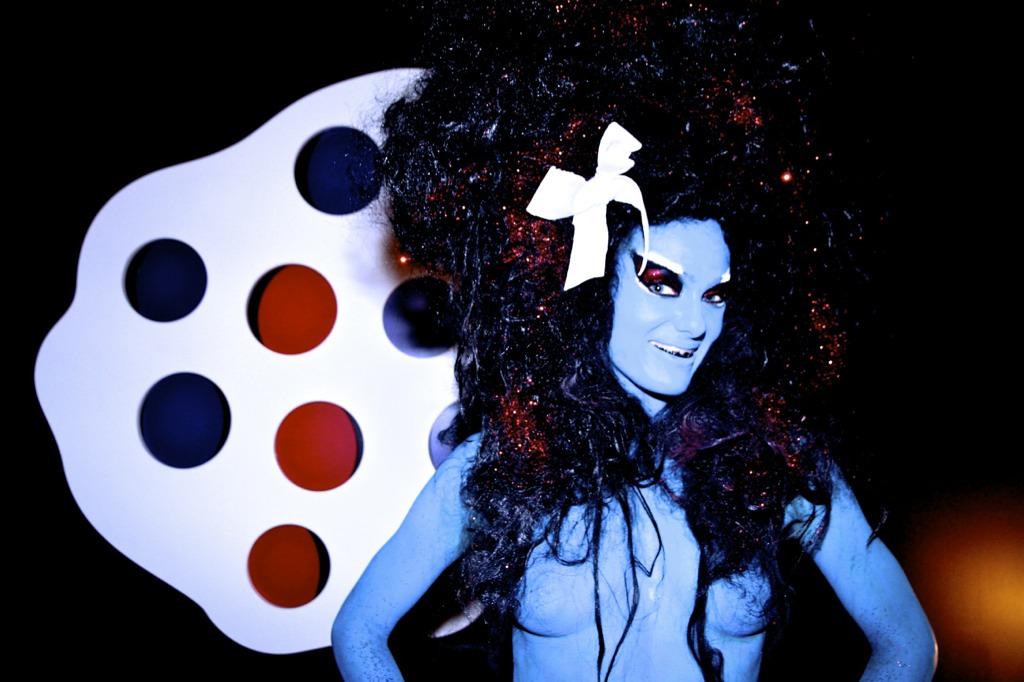 The Wall of Vagina was born out of a discussion i had with my band while on your in the US- We traveled in a Winnebego and always looked through men’s magazines at truck stops. Once we bought a Penthouse that showed four girls stacked on top of each other like pancakes, provoking a feeding frenzy from all of us. Not one, not two, not three…but four girls! I thought it would look sculptural to have the Girls of Karen Black as a Wall of Vagina. I did the old turkey-baster-with-plain-yogurt as a topping for the wall, and it provokes a complex reaction from the audience who don’t know whether to applaud or vomit.