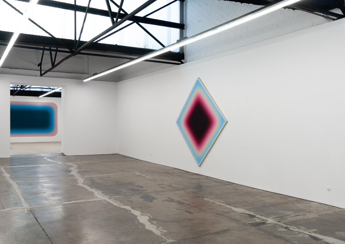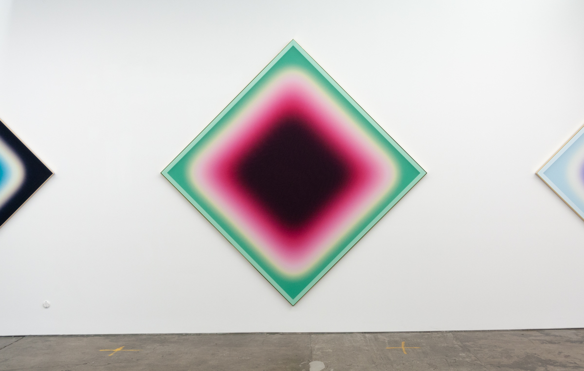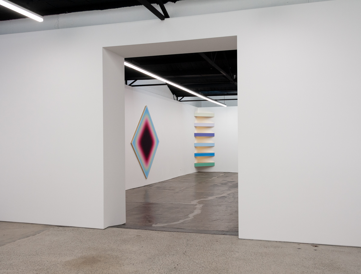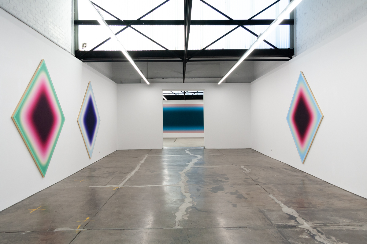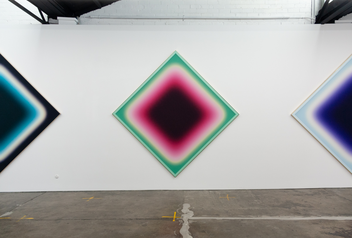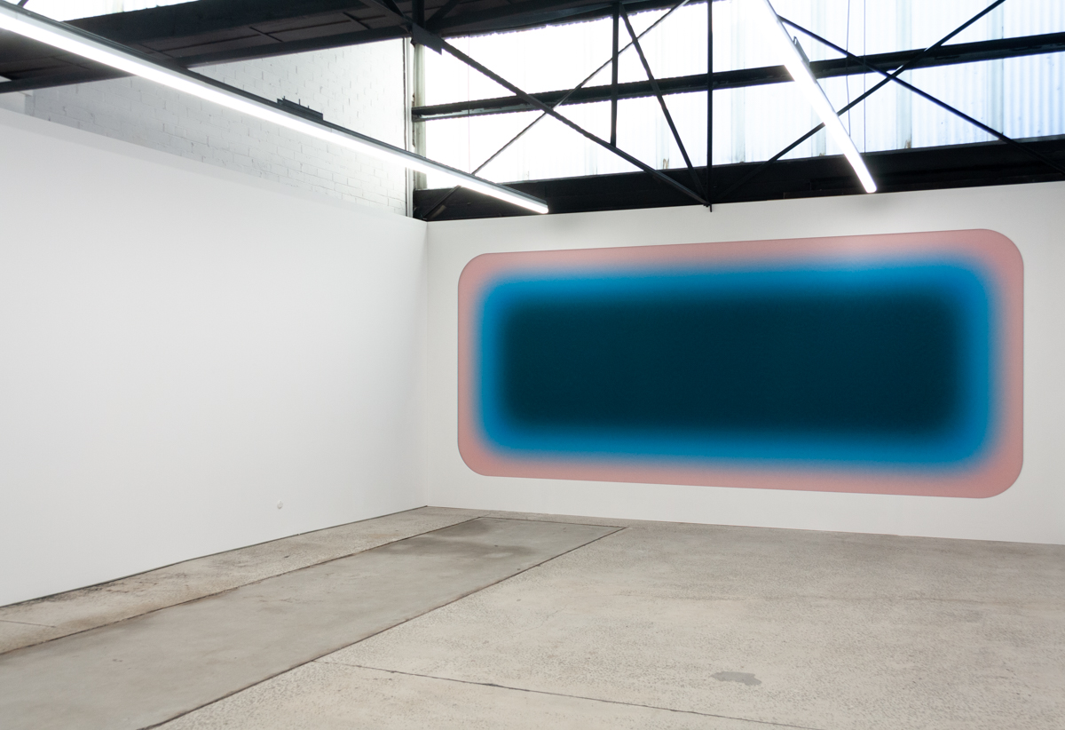 A solo exhibition of works by Jonny Nieshce is now open at 1301SW in Melbourne. Atoms Encode sees the Sydney-based artist push his unique painting practice even further, literally stretching it to create a work that holistically “skins” the entire rear wall of the gallery.