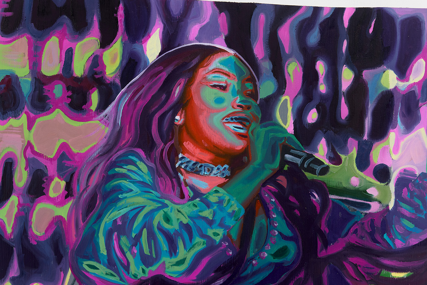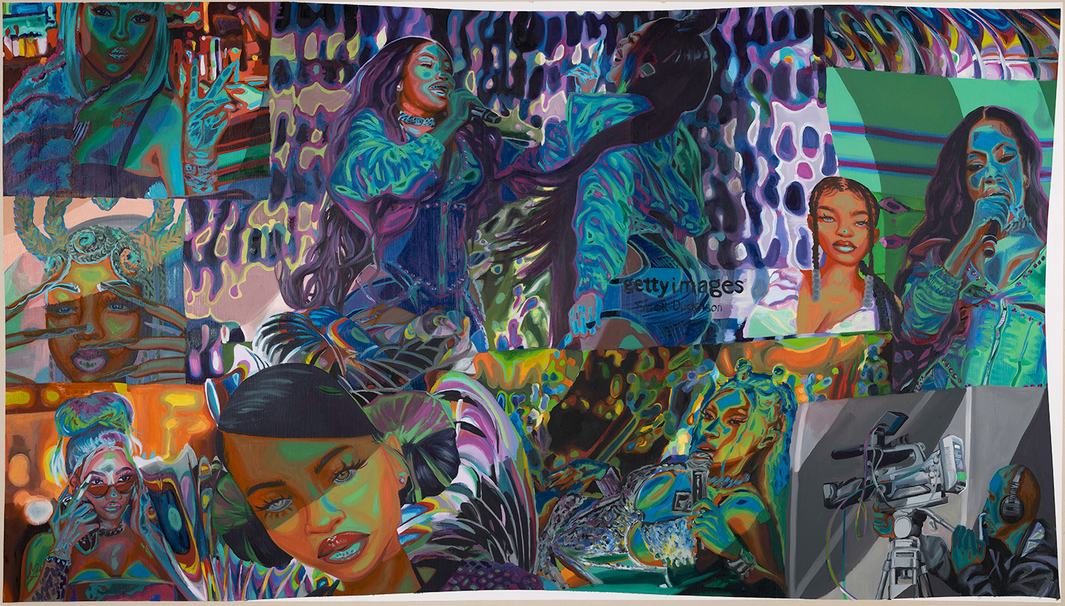 Filtering media through layers of digital manipulation, Cherry's work draws parallels between Black femme bodies, frequently commodified and positioned as sexual assets, and the seductiveness of art objects in the commercial gallery circuit. Resisting easy placement in the cultural marketplace of hot-takes, these paintings decline respectability politics in favor of a nuanced and unabashedly sexy assessment of online drama, distortion and desire.