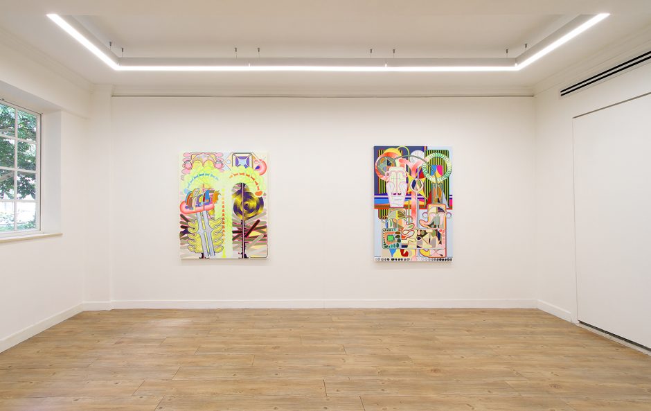 Eric Shaw was born in 1983 in New York, where he lives and works. His works are inspired by various graphic designs, logos and signs seen all over the city, and his work is a creation of images he has seen, which he combines and continuously alter and reconstruct. He transforms the sceneries we see every day into a hybrid abstract expression by moving between reality and digital and repeatedly moderating the urban environment.