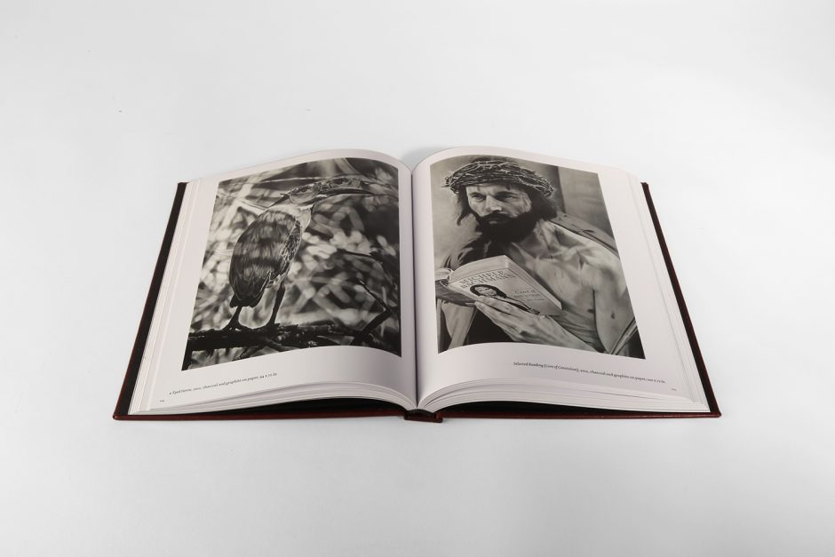 10 YEARS is the first comprehensive book on the artist Eric Yahnker, capturing a decade of work and exhibitions. From early graphite drawings in 2008, through to his most recent solo show in New York at the end of 2018. The subject of Yahnker’s work has always been closely tied to the cultural and political upheavals in America, these ten years (2008-2018) also reveal the seismic shift in American culture itself during that decade. Three hundred and twelve pages of high quality reproductions of his virtuosic draftsmanship skills in graphite, charcoal and pastel are emphasized, as are his installation and sculptural works. Approaching a catalogue raisonne, this handmade, limited edition monograph is a critical look at an important period in the artist’s career as well as a shoulder-check on a decade of American culture.